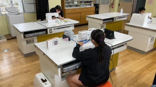 ミシンを使って上手に作ります! 6年生が、学習で使う辞書を収める袋を家庭科室で作っていました。慣れない手つきの子もいましたが、みんな一生懸命に上手に作っていました。