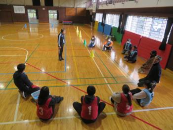 (先生)JFA体育サポート研修会 公益財団法人日本サッカー協会より、講師の先生をお招きして、サッカー(ボー運動・ゴール型)の授業づくりについて研修会を行いました。体育館での…