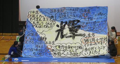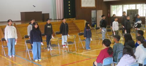 卒業式予行練習 本日、卒業式の予行練習を行いました。体育館には1年生から6年生までの全校児童が集まり、本番と同じ流れで式の進行を確認しました。体育館には、…