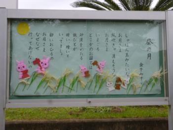 今日から9月です。外の掲示板も秋バージョンに変わりました。折り紙や文字を書いていただいている地域の方のおかげで、季節の変化を感じることができます。