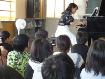 4年生は1クラスずつ、音楽室でピアニストの方の演奏を聴くことができました。始まる前は少しざわざわしていたのですが、演奏が始まると食い入るようにシーンとして聴き始め、そのうちに音楽に合わせて体を揺らすようにして味わっていました。目の前で演奏している姿を見ることができて、とてもいい体験でした。