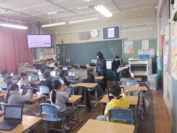 2年生の教室では、1人壱台端末を使って、共同編集アプリを使う子供たちの姿がありました。