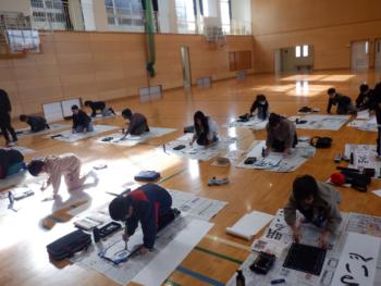 体育館で書初めを行いました。