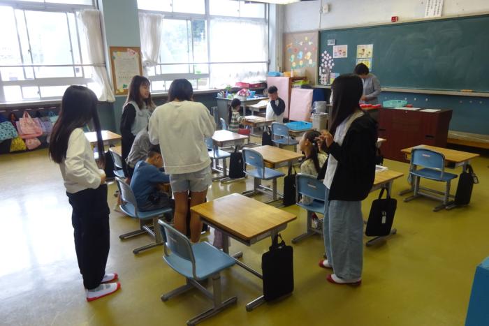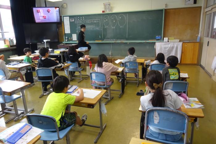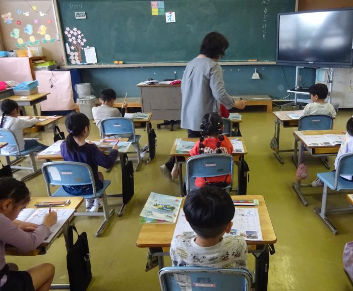 ひらがなの学習 1年生は、ひらがな「え」の書き方を学んでいました。真剣な表情で丁寧に書こうとしている様子がよく伝わってきました。正しい書き方をしっかり学んで…