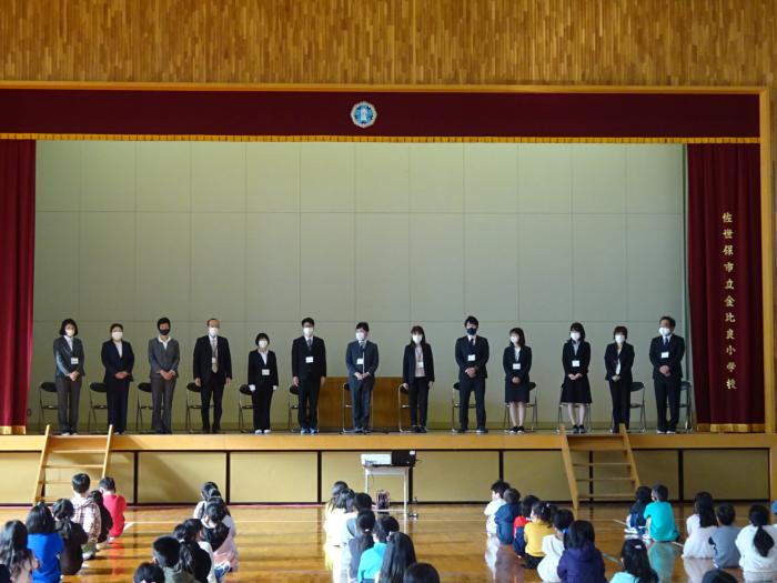 着任式 始業式 新しい先生方がたくさん金比良小学校に来てくださいました。これからよろしくお願いします。