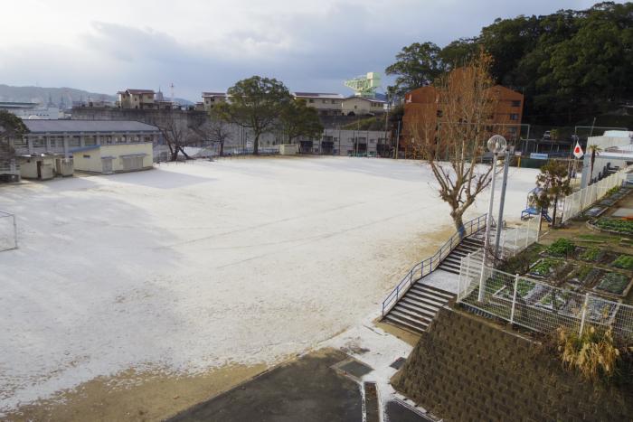 雪景色の中の後期後半のスタートです。