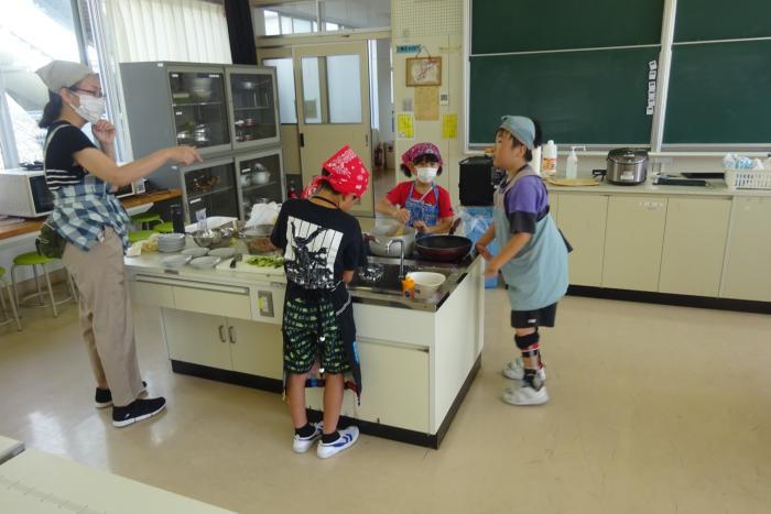 カレー作り 特別支援学級の子どもたちはナスやオクラ、ニンジン、キュウリなどを学校園で育てていました。今日は特別支援学級全員で収穫した野菜を使ってカレー作…