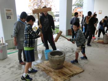餅つき大会 西地区自治協議会主催の餅つき大会が本校で行われました。