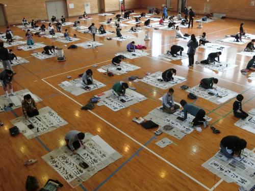 書き初め会 日本の伝統的行事である書き初めに全学年取り組みました。