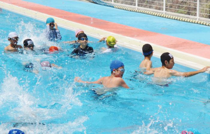 自分たちの手できれいにしたプールで楽しく泳ぎ初めができました。