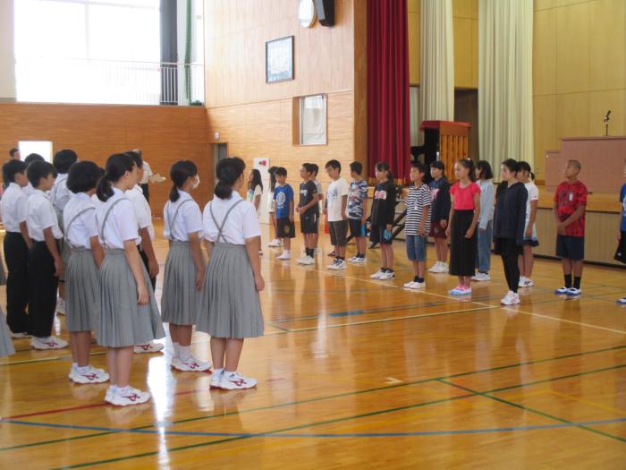 小中学校対面式 6年生の児童が今日から光海中学校の教室での生活を始めました。対面式では、6年生18名の後ろに制服を着た中学生がずらり。緊張した様子でしたが、…