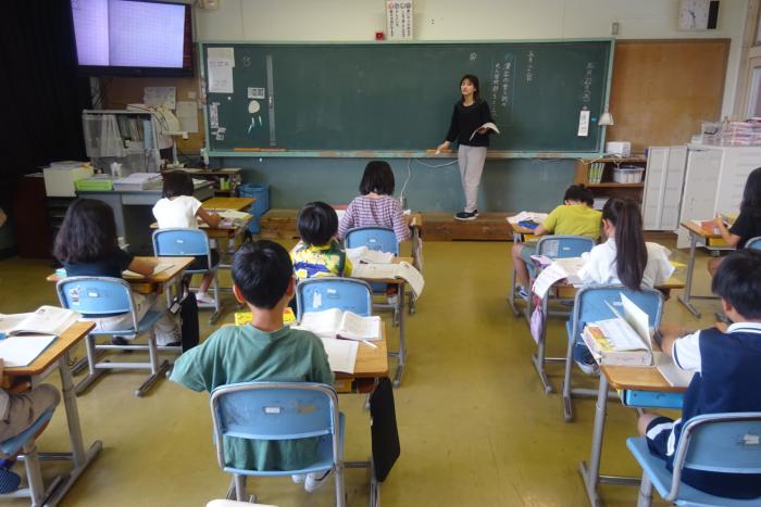 6年英語の学習 今日の5校時は6年生は英語の学習をしていました。5・6年生は週に2回光海中学校の英語担当の先生からT1・T2で授業を受けています。毎回子ども…