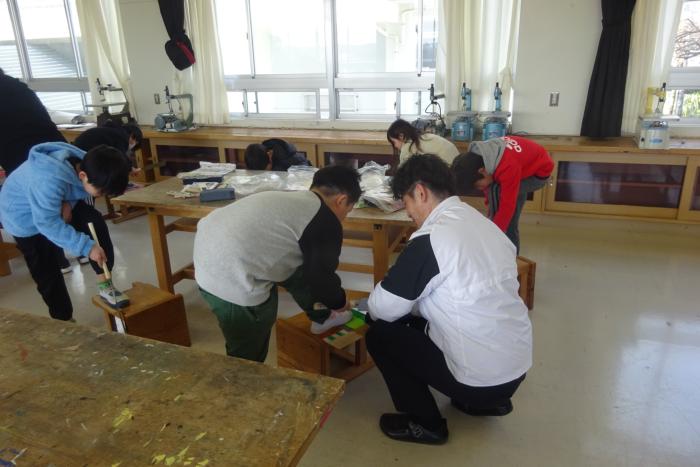4年生の5時間目は図工の学習でした。この時間には出前授業として光海中学校の教頭先生にご来校いただきのこぎりの使い方や木の板の切り方を教わっていました。これも小中一貫型の学校ならではの取組です。