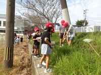 1年生の生活科の学習で、秋の虫さがしをしました。だいぶ涼しくなってきたので、校舎の外での活動がやりやすくなりました。虫かごと虫網を手にした1年生、バッタが跳ねるたび、草むらの中で何かが動くたびに「キャー!」と声を上げながら、楽しそうに捕まえていました。大きなトノサマバッタを捕まえた子もいましたよ。