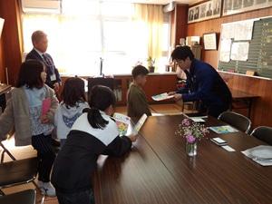 校区内にある自動車部品の会社CVTEC様より、交通安全についての「うんこドリル」を寄贈していただきました。今日はCVTEC様から低学年の代表の子どもたちへの贈呈式を校長室で行いました。1・2・3年生の子どもたちに配付して、交通安全の意識を高めたいと思います。