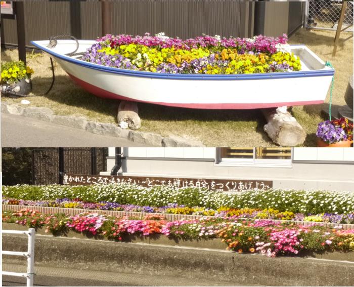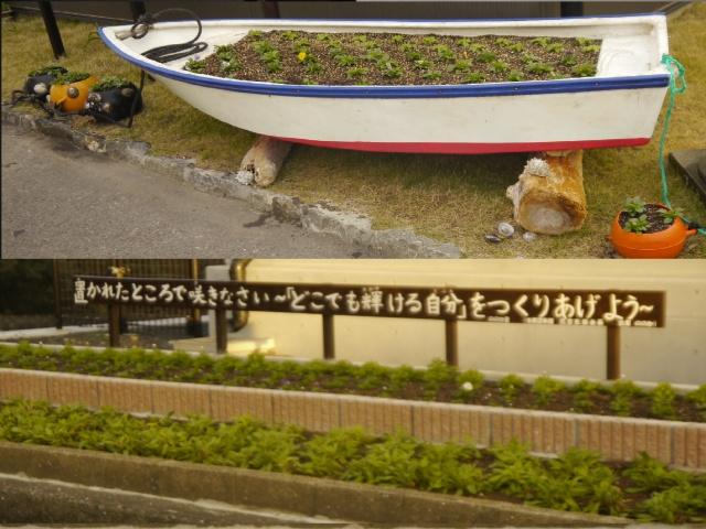 船の花壇ができました!! 黒島小中学校に新しい船の花壇ができました。