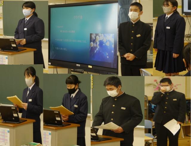 7年生は黒島の歴史について、8年生は職場体験学習と野外宿泊体験での九十九島の生物と黒…