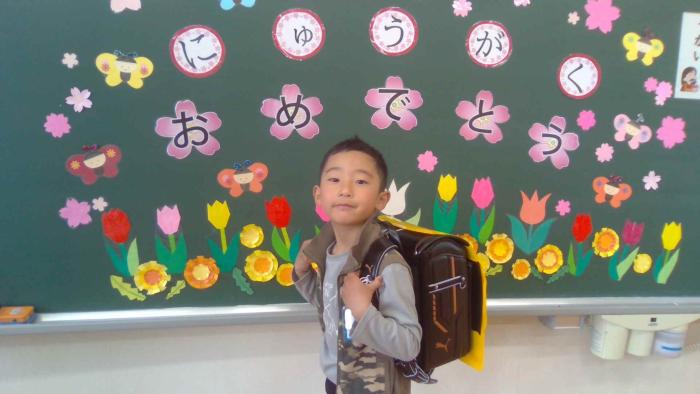 新入生 はじめてのランドセル登校 1年生が、自分のランドセルを背負って初めての登校です。表情がとてもいいですね。一年生になったことへの喜びに満ちているように見えます。