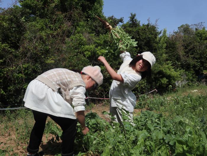 大根の収穫 畑の大根を3年生が収穫しました。とても楽しそうに作業を行っていました。