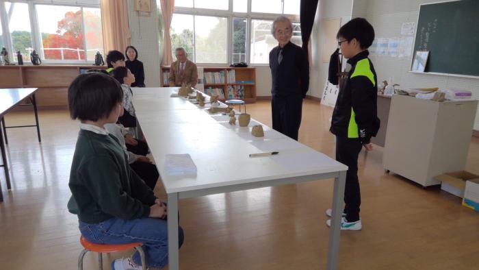 一人ひとり自分の作品を紹介した後に~戸先生から心温まる講評をいただきました。みんなうれしそうに先生のお話を聴いていました。