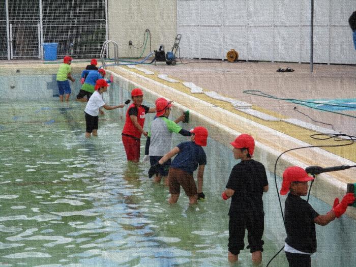 プール掃除頑張りました! 7日(金)に4〜6年生がプール掃除を行いました。プールサイドやトイレ、大プール、小プール、更衣室などみんな一生懸命取り組んでいました。おかげ…