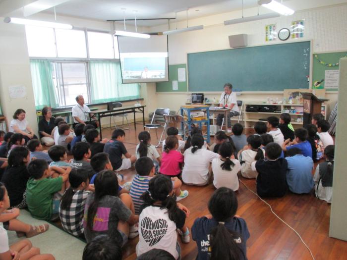 平和集会を行いました 久しぶりに子供たちの元気な声が帰ってきました。今日は、「県民祈りの日」で全校児童、登校日でした。平和集会では、地域の戦争体験者の方にゲスト…