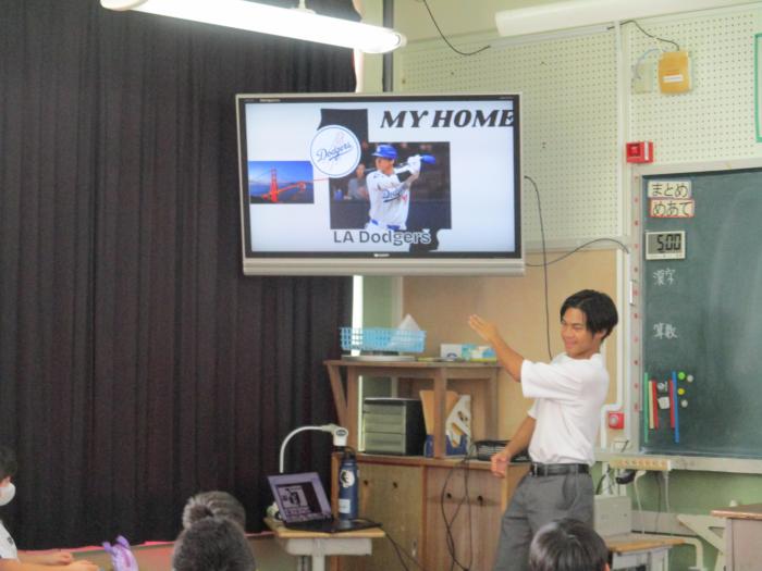 ALTの先生と楽しく英会話 9月9日、ALTの先生が来校され、1〜5年生の子供たちが楽しく英会話の学習をしました。先生の名前は「ショーン リエル先生」今年8月に、カリ…
