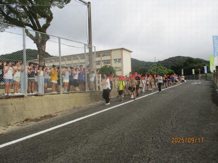 宿泊体験学習へ出発! 9月17日、5年生が全校児童に見送られて宿泊体験学習に出発しました。「佐世保青少年の天地」で1泊2日の予定でいろいろな活動をします。今日は…
