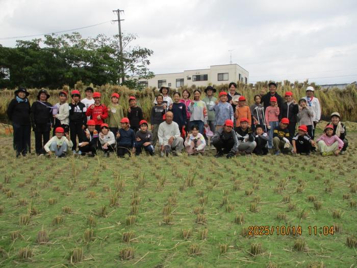 稲刈り 頑張りました! 14日に5年生が稲刈りを行いました。5月に種から苗を育て、6月に田植えを行い、そして今日、実った稲をみんなで刈り取りました。川中さんのご指…