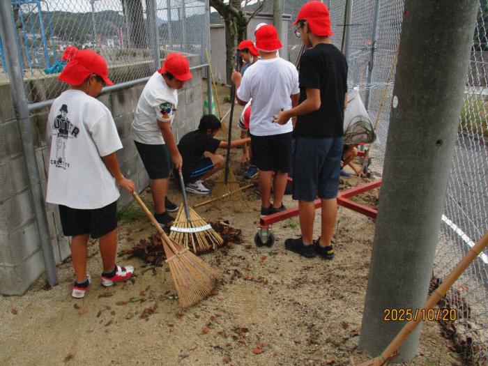 登校後、運動場に落ちている落ち葉を掃除してくれています。朝の少しの時間ですが、毎日続けると運動場がきれいになっていくのが分かります。主に高学年のみんなが頑張ってくれています。ありがとう!