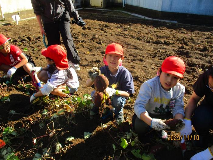 10日、2年生が「いもほり」を行いました。6月に校舎裏の畑でいもさしをして5か月経ちました。一斉に掘り出すと、大きな芋がたくさん出てきました。お忙しい中、保護者の方もたくさん応援に来てくださいました。ありがとうございました。みんな笑顔でした。