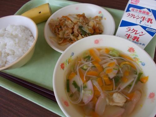 6/6(金)今日の給食 牛乳 ごはん ビーフン汁 回鍋肉 バナナ