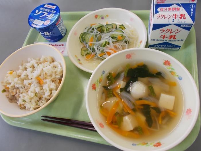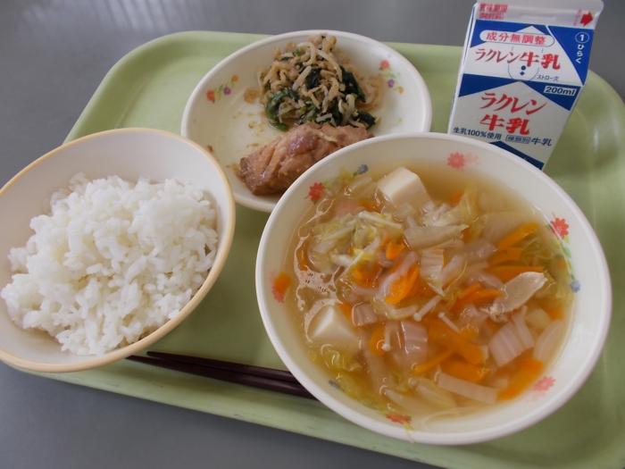 6/4(水)今日の給食 牛乳 キムタクごはん すまし汁