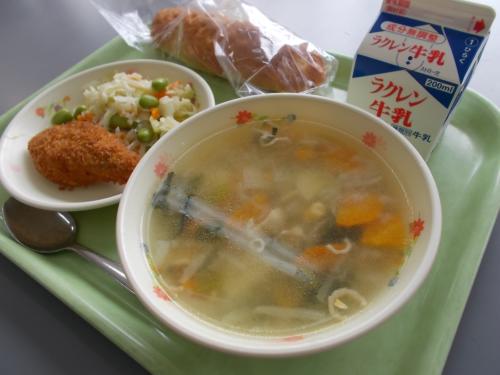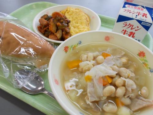 7/1(月)今日の給食 牛乳 コッペパン ビーンズスーププ レーンオムレツ ラタトゥイユ
