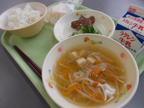 7/2(火)今日の給食 牛乳 ごはん つみれ汁 豆腐チャンプルー すいか