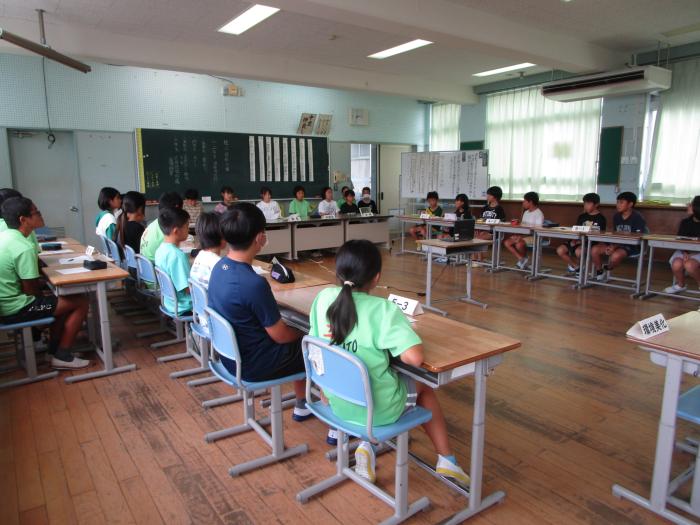 運動会のスローガンと学年の取組を決めよう、という議題で熱心な議論が行われました。各学級で話し合ってきたことを発表する姿がしっかりしていてびっくりしました。