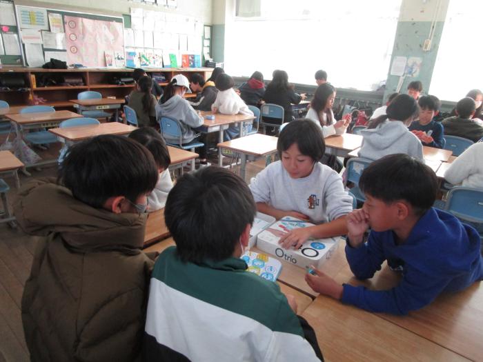 いよいよ冬休みも目前。今日は2学期最後のクラブ活動です。異学年と触れ合う貴重な学びの機会です。ゲームクラブでは、仲良く楽しそうにボードゲームやカードゲームをする姿が見られました。