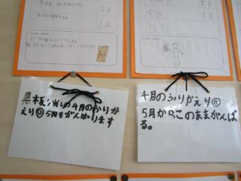 4月が終わります。4年生では、係活動の今月の振り返りが記入されていました。よいことは継続する、変えたいことは、みんなに呼びかけるなど、子どもたちが自分で考える機会を設けています。