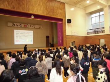 さわやかタイム 今日の朝の時間は、さわやかタイムでした。給食集会で歌う「えいようの歌」の練習です。はじめは、寒いこともかったのか歌声はとても小さかったので…