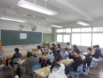卒業メニュー 今日の給食は6年生の卒業を祝う「卒業メニュー」でした。から揚げやイチゴや赤飯など、いつもの給食より豪華なメニューに大喜びです。6年生に教室…