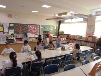 絵本の読み語り 毎週月曜日の朝の時間は、図書ボランティアさんが1年生を中心に絵本の読み聞かせをしてくださっています。今朝は1年生と2年生に本を読んでくださ…