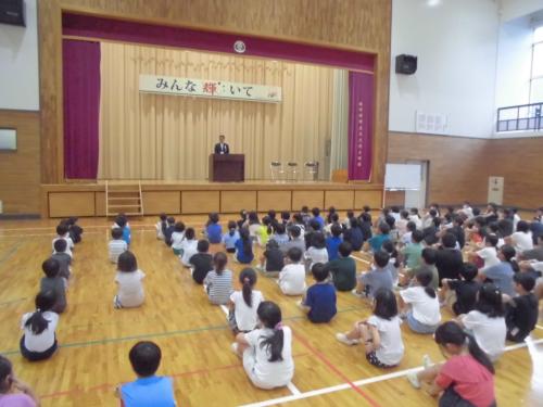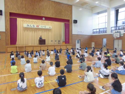 8.9平和集会 今日は、県民祈りの日でした。朝から元気に登校してきた子どもたちの表情からは、充実した夏休みを送っていることが伝わってきました。