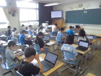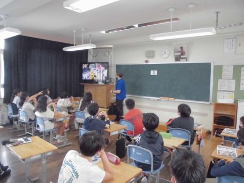 外国語の授業 7月2日(火)、今日はALTの先生が来校され、外国語の授業を補助していただきました。ALTの先生は、アイルランド出身のシェーン先生です。6…