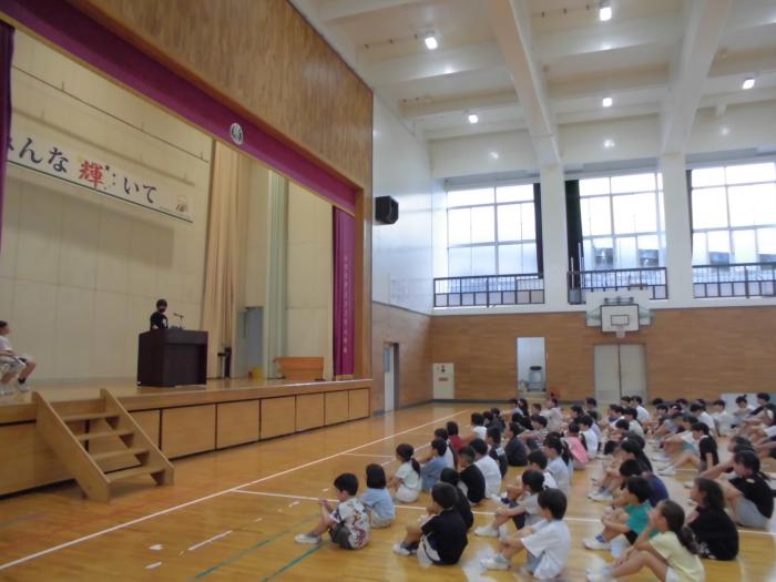 |  | 8.9平和集会 登校日 夏休みが始まって17日が経過しました。久しぶりに登校した子どもたちはとても元気で、さっそく夏休みの思い出を話してくれる子もたくさんいました…