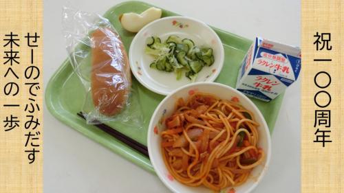 10/4(水)今日の給食 ぎゅうにゅう くろざとうパン スパゲティナポリタン フレンチサラダ りんご