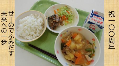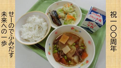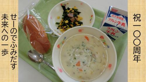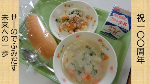 11/13(月)今日の給食 ぎゅうにゅう コッペパン こめこととうにゅうのポタージュ ツナサラダ