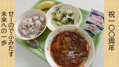 10/20(金)今日の給食 ぎゅうにゅう ビーフカレー(じゅうろくこくまいごはん) だいこんサラダ バナナ