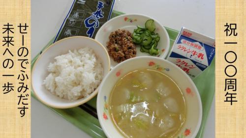 10/26(木)今日の給食 ぎゅうにゅう てまきずし(すめし・ミンチなっとう・きゅうり・のり) つみれじる