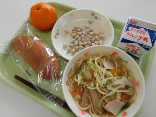 9/11(金)今日の給食 ぎゅうにゅう くろざとうパン ちゃんぽん りんかけだいず れいとうみかん