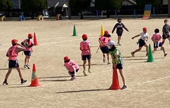 だれが運んでいるのかな? 今朝は冬に逆戻りしたように寒い朝でした。少しずつ気温も上がり、日中は運動するにはとてもよい気温となりました。運動場では。体育の授業でタグラグ…